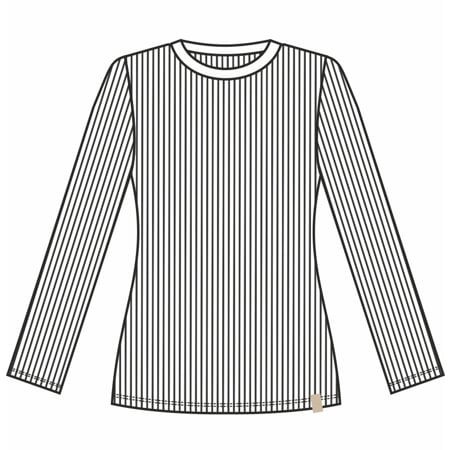 Dámské tričko klasického střihu s dlouhými rukávy a kulatým výstřihem, který je úzce olemovaný.