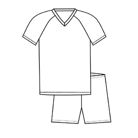Funkční pyžamo pro muže, s krátkými rukávy a nohavicemi. Tričko je dvoubarevné, má rukávy raglánového střihu a špičatý výstřih olemovaný kontrastní barvou, shodnou s barvou rukávů a kalhot. Krátké kalhoty mají pružný pas s možností regulace délky pruženky.