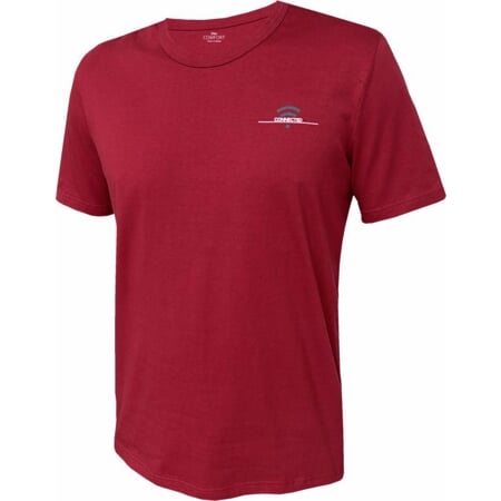 Pánské tričko z biobavlny. Inovovaný klasický střih s krátkými rukávy a kulatým výstřihem. Vlevo na prsou je natištěný malý dvoubarevný motiv. Výstřih je olemovaný pružným materiálem.