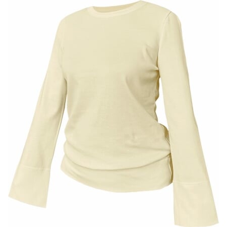 Elegantní dámské tričko s dlouhými, módně rozšířenými rukávy. Slušivý kulatý výstřih je olemovaný. Rukávy a dolní okraj trička jsou zakončené lemem v žebrové vazbě.