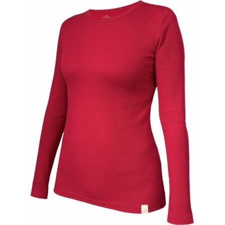 Dámské tričko klasického střihu s dlouhými rukávy a kulatým výstřihem, který je úzce olemovaný.