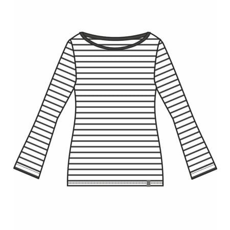 Módní střih s dlouhými rukávy, od loktů mírně rozšířenými. Decentní lodičkový výstřih je úzce olemovaný.