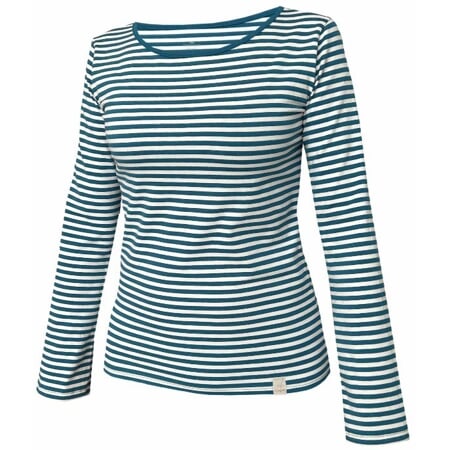Typ jemnějších proužků v módním odstínu petrolejové s bílou. Svěží vzhled doplňuje ozdobná etiketka v přírodních odstínech béžové.