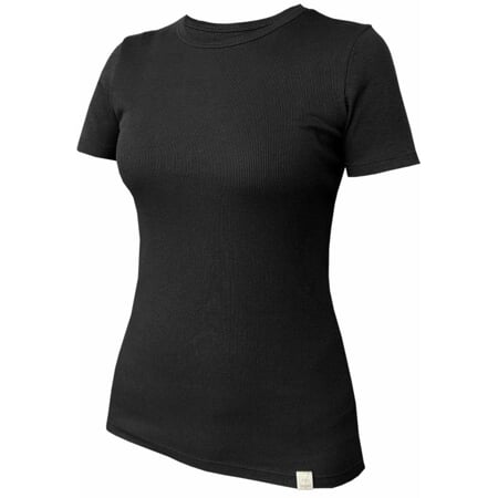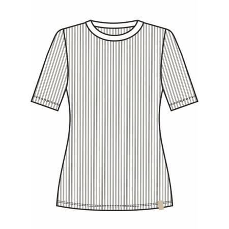 Dámské tričko klasického střihu s krátkými rukávy a kulatým výstřihem, který je úzce olemovaný.