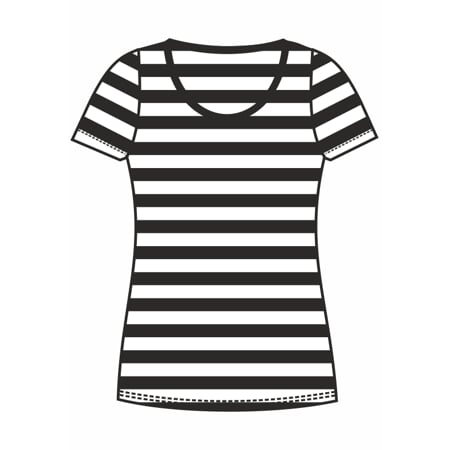 Dámské letní tričko s dezénem modrobílých proužků. Klasický střih s krátkými rukávy a kulatým výstřihem, který je úzce olemovaný.