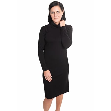 Elegantní dámské šaty z merino vlny, mají slušivý střih s dlouhými rukávy a rolákem na krk. Skvělé ke kozačkám! Šaty jsou v délce ke kolenům.