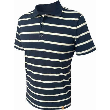 Sportovně elegantní pánská polokošile ve větších velikostech, se slušivým proužkovaným dezénem. Oblíbenou tmavě modrou barvu úpletu doplňují proužky ve světle béžovém odstínu. Krátké rukávy klasického střihu, pletený límeček a léga na tři knoflíčky. Svěží vzhled doplňuje ozdobná etiketka v přírodních odstínech béžové.
