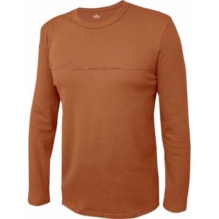 Pánské tričko klasického střihu ve větších velikostech, pro plnější postavy. Dlouhé rukávy bez lemů, kulatý olemovaný výstřih. Přes prsa je natištěný jemný vodorovný motiv.